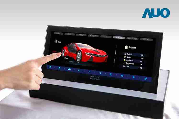 12.3 寸 Full HD LTPS 显示屏同样具备 1000 nits 高亮度,,,搭载内嵌式触控技术,,,,整合驱动与触控 IC 于显示屏制程,,,,使显示屏厚度降低,,为中控台创造更多机构设计空间。。应用于抬头显示器的 3寸 LTPS 显示屏具有高穿透率、、、、1200:1 高对比度度,,,,以及 297 PPI 高画素密度。。。。液晶最高可耐受到 110C 的高温 (TNI) 而不液化,,,在阳光高温下维持优异稳定的显示效果。。。